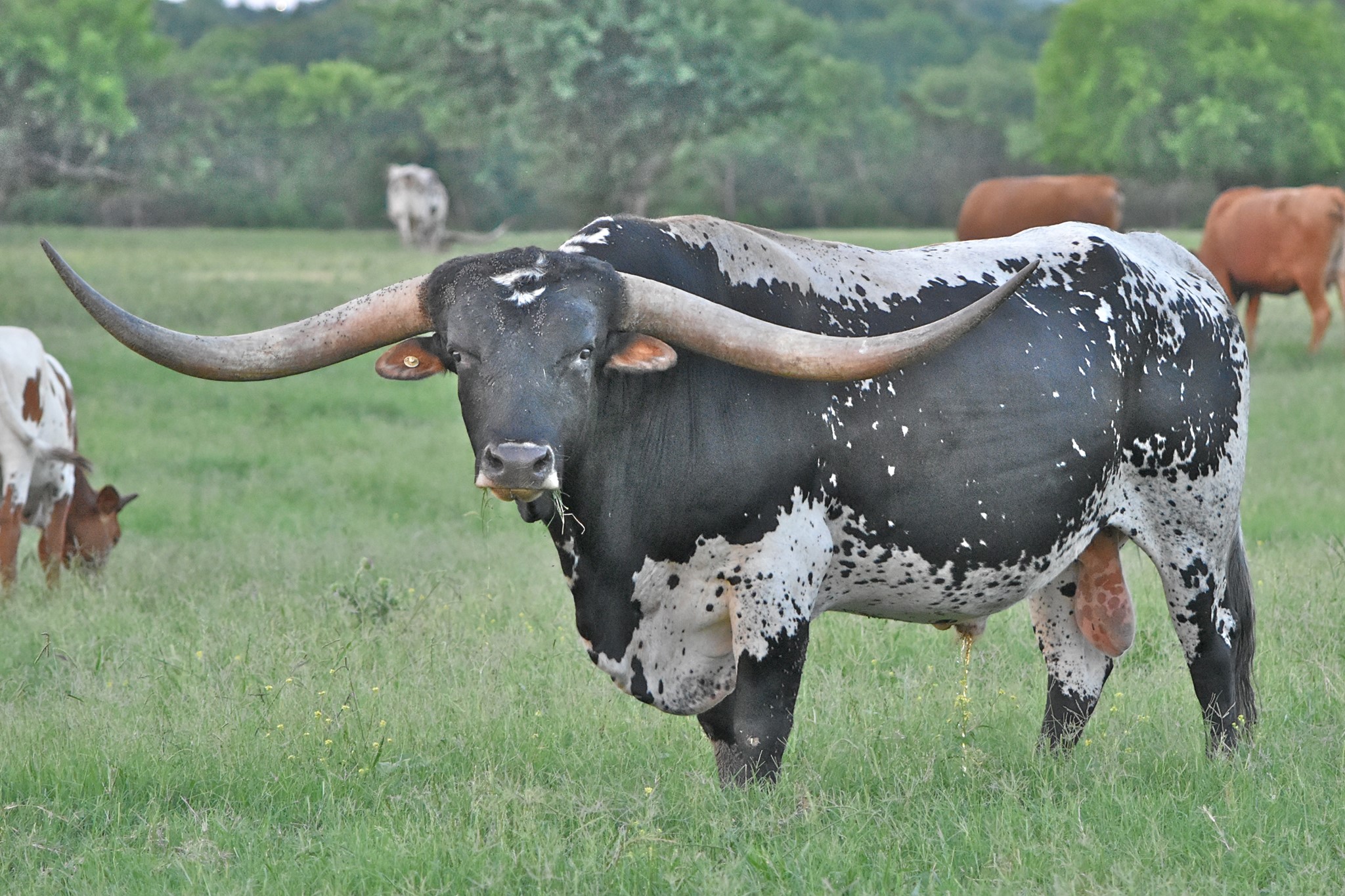 Proven production from an impeccable pedigree, 20 GAUGE continues to rock the Texas Longhorn community with complete and beautifully colored offspring that are highly desirable in every way, including early horn growth. We contribute his outstanding production to his unique and powerful maternal genetic line. In partnership and through semen sales, 20 GAUGE is being utilized in the best breeding programs in the Country with amazing results pouring in. Just look at his progeny and futurity earnings, and you will agree. Study his pedigree, and you will find multiple proven producers of horn, horn with twist, color, and conformation. In 20 GUAGE'S pedigree are some of the all-time great producing herd sires in the Industry, beginning with his sire CONCEALED WEAPON and grandsires, JP RIO GRANDE, J.R. GRAND SLAM, PEACEMAKER 44, GUNMAN, LAMBS POWER PLAY, OVERWHELMER & WATSON 83, to name a few. 20 GAUGE (2022, 2023 and 2025 BULL OF THE YEAR with over $80,000 of life-time earnings) is the highest earning bull since tracking futurity earnings began. Notably in 2025 20 G scored 12,000 points higher then the second place contender for bull of the year. An incredible record that will probably never be beaten. He is undefeated in futurities and is a former Horn Showcase Champion winning in tip-to-tip, total- and composite horn. We believe the long-term legacy of HUBBELLS 20 GAUGE, with each calf that hits the ground, will prove to be among the best producing Herd Sires in Texas Longhorn History.