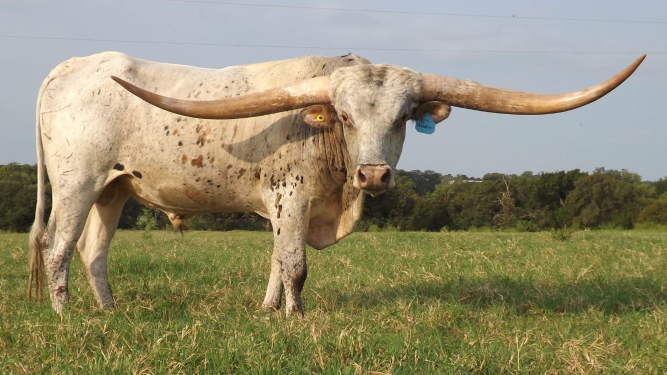 Craft Ranch and Deer Creek Longhorns are proud to own this remarkable young bull. Measured over 72.50"ttt at 24 months. He kept up the pace measuring in at 85.75" ttt before his 3rd Birthday. Houdini has size, color production, incredible horn growth, disposition and one of the best pedigrees in the longhorn industry. See the comments tab below for more on the five marketable traits you can find in Houdini!
