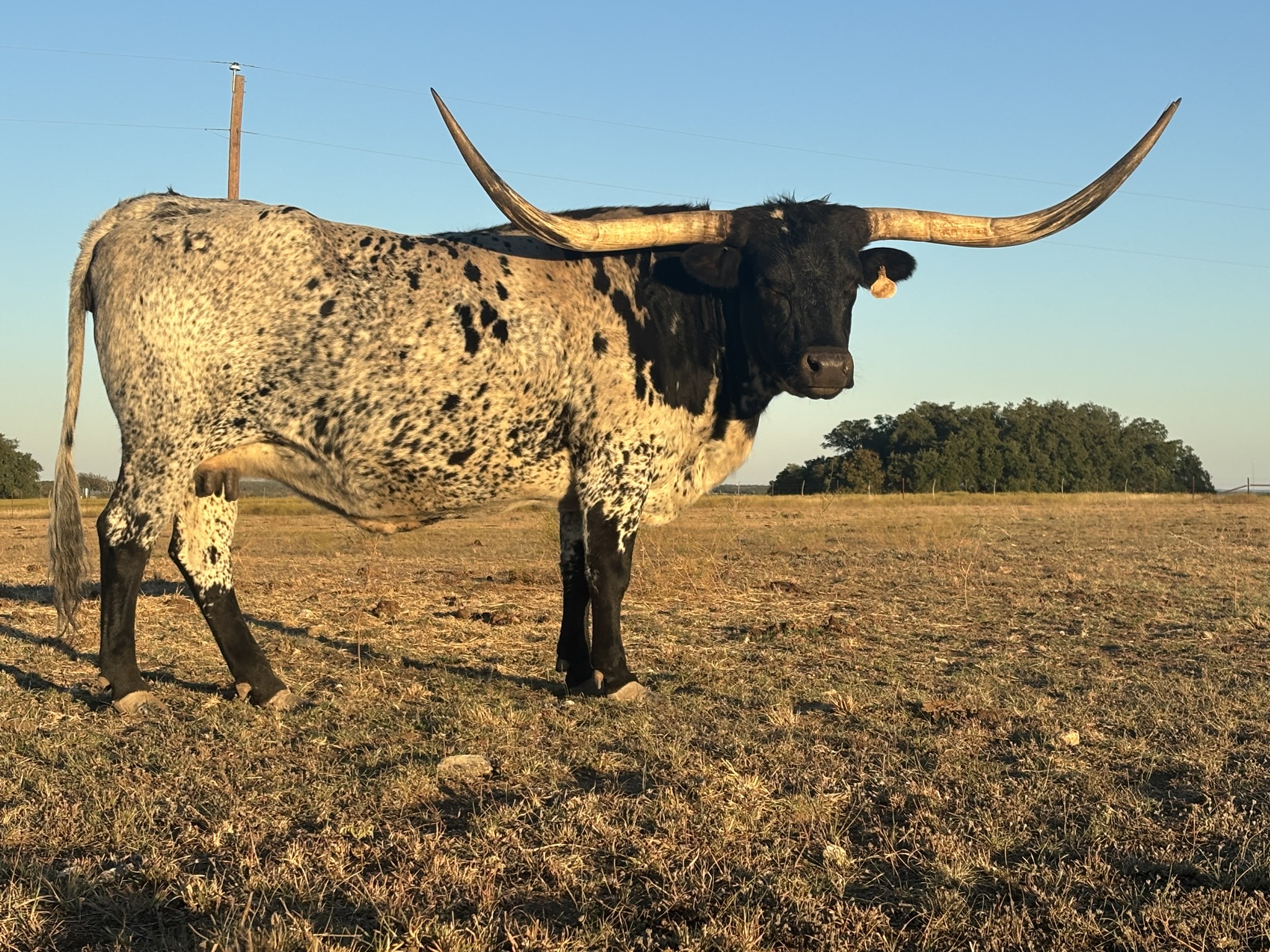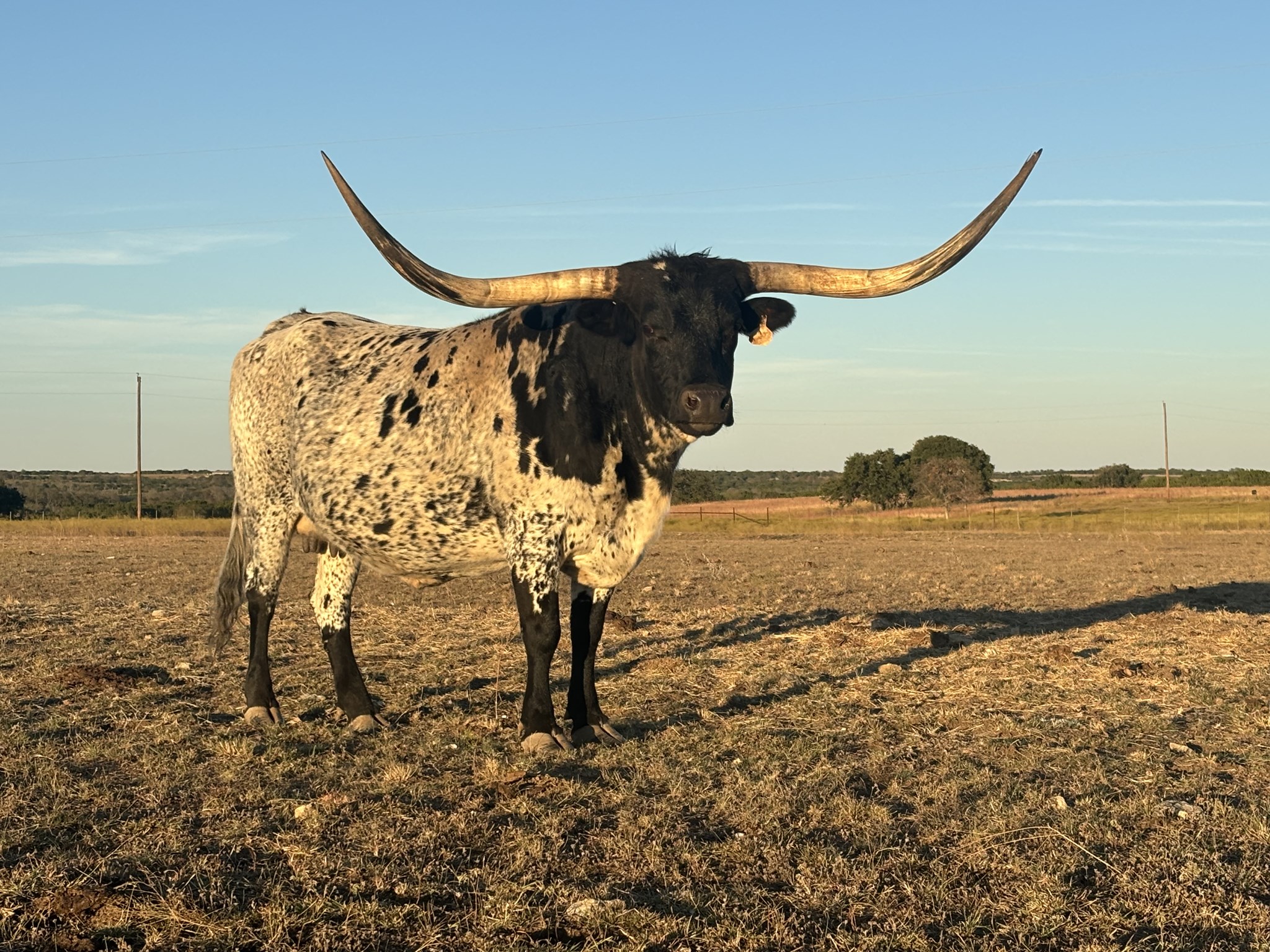 We are really excited about this cow. She has a lot of horn for her age. She is a deep bodied cow with great conformation She has the TRUE BLACK and white color. She produces color, conformation and horn.